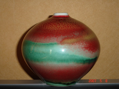 色澤如施在白瓷一樣鮮艷奪目, 成為代表他作品獨一無二的個性及難以被模仿的珍品, 為陶壺展現了嶄新的風貌, 也是一次新的突破。 他的各種新窑變天目茶碗更是獨具一格, 產生了千變萬化自然美的天目色澤, 美不勝收, 也是一項嶄新的突破。